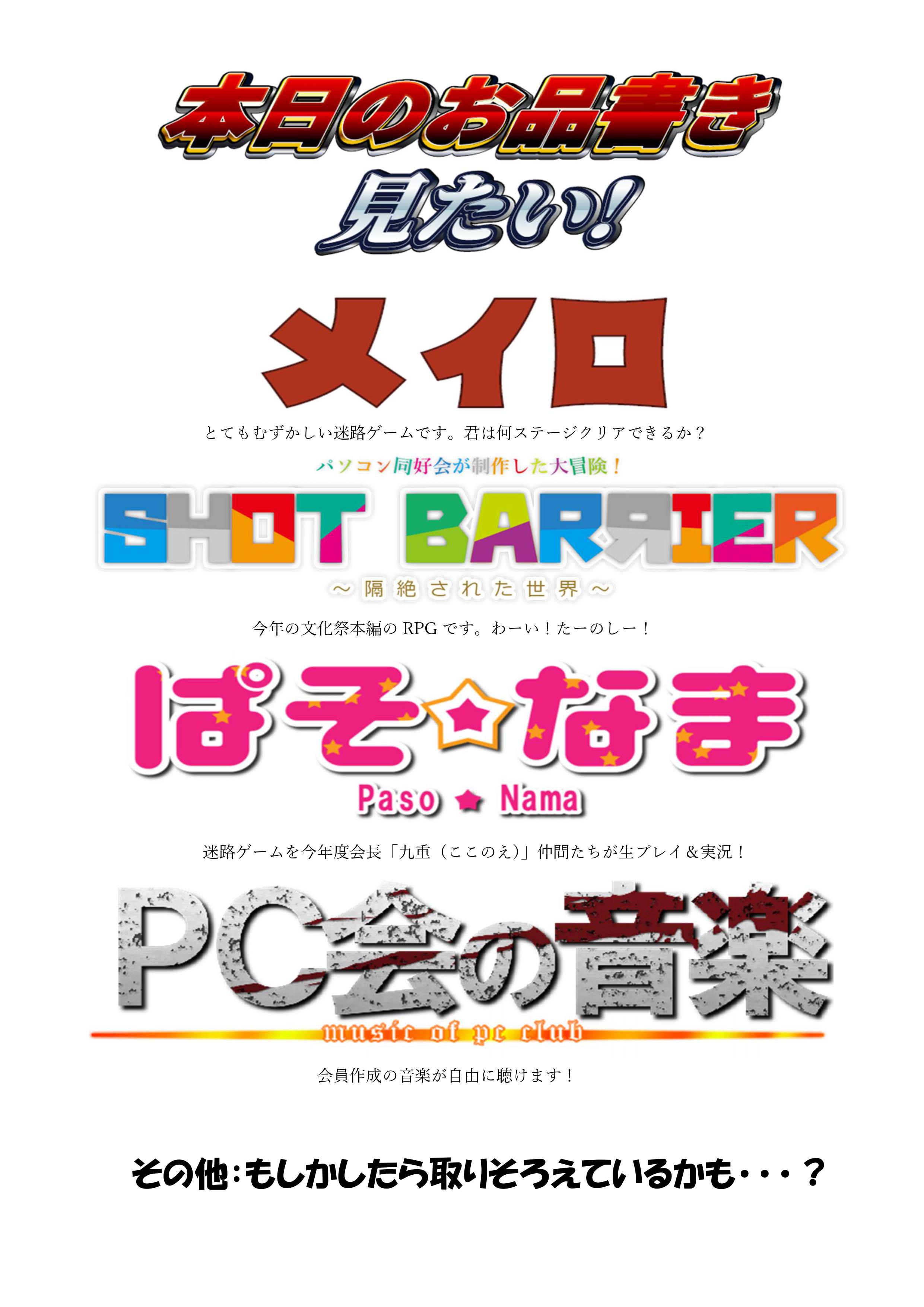 七月・八月と更新頻度が低かったのですが、これからは以前と変わらない頻度であげられるよう頑張りますので、今後とも町高パソコン同好会をよろしくお願い致します。