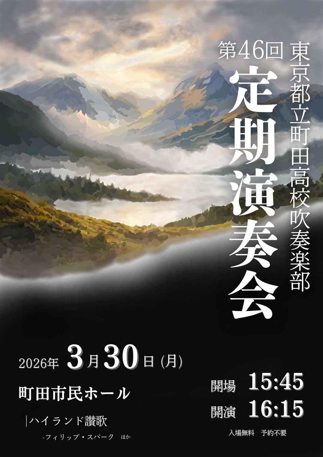ともあれ、無事に卒業式は終わりました。もう2025年度も終わりです。年度の終わりには恒例の定期演奏会があります。03月30日、町田駅から少し歩いて町田市民ホール、15時45分開場の16時15分に開演です。是非見に来てください。ご来場いただいた皆様には吹奏楽部による(完成度は保証できないけど)演奏があります(当たり前)。さて、78期生もいよいよ受験生......なのですが、私はそれよりも音楽が好きなので、コンクールまで確実に残ると予想されます。落ちたら全力で殴ってあげてください。